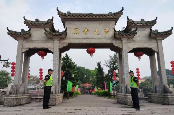 為了確保廟會的安全,針對今年廟會參與群眾多、系列活動多的情況,廣東國盾特衛保安集團提前制定了周密的安保工作方案和處置突發情況預案,專門召開會議進行研究部署,明確了任務分工和具體要求。集團共派出百余名保安隊員分布到廟會各個崗點,全力維護廟會現場及周邊秩序的同時,也大力宣傳禁毒工作,推動禁毒事業。圓滿完成了本次廟會的安全保衛任務,受到了上級機關部門的認可。