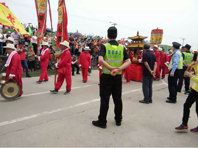 當日活動盛況空前,各種演出活動云集,群眾紛紛涌向胥江祖廟燒香祈福,踏青賞景。參加保衛任務的隊員在清晨6點多已經到崗到位,按照責任分工迅速開展工作。保衛任務過程中,人頭攢動,熙熙攘攘的市民與藍天白云共享這場盛會。所有隊員著裝整齊、文明平和、盡職盡責,全力做好人流和車流疏導工作,堅決預防踩踏事件、交通事故等情況的發生,充分展現了國盾特衛“吃苦耐勞、無私奉獻”的精神面貌。各隊員之間更是相互協作,緊密配合,形成了強大的安保合力,有力地保障了廟會活動的平穩有序進行。