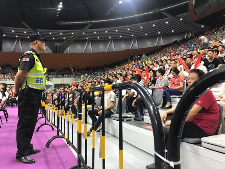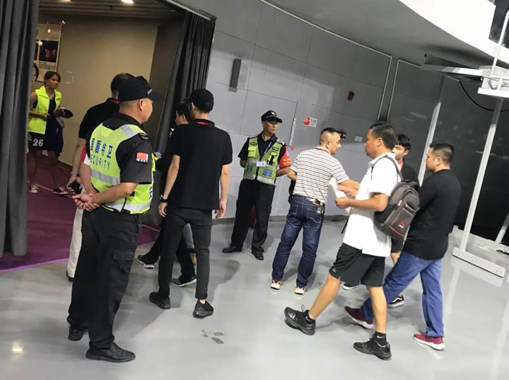 由于這場(chǎng)職業(yè)籃球挑戰(zhàn)賽有著名CBA球星易建聯(lián)參賽,人氣熱度較高,門(mén)票一早已預(yù)售完畢。肇慶市政府對(duì)這場(chǎng)籃球賽事高度重視并作出了工作部署,成立現(xiàn)場(chǎng)協(xié)調(diào)指揮部,我司被主辦方邀請(qǐng)擔(dān)任這場(chǎng)賽事的安保主要力量。