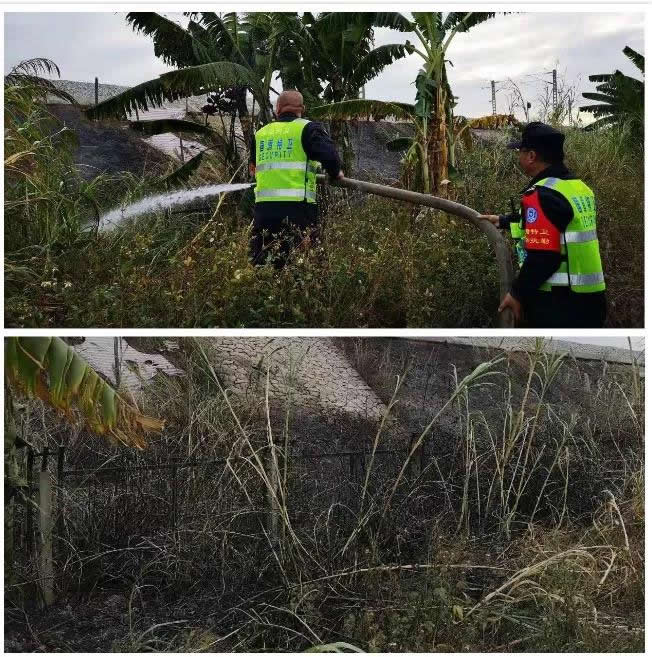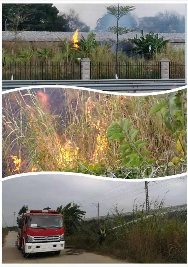 2019年12月5日下午16時(shí)許,北汽福田廠西南方向院墻外鐵路邊突然著火,我司派駐北汽福田廠保安隊(duì)長(zhǎng)馮大喜第一時(shí)間發(fā)現(xiàn)火情,立即前往現(xiàn)場(chǎng)查看,并及時(shí)向廠相關(guān)部門領(lǐng)導(dǎo)上報(bào)情況和報(bào)119火警,又因火勢(shì)較大,特向廠相關(guān)部門領(lǐng)導(dǎo)請(qǐng)示啟用廠內(nèi)消防車進(jìn)行滅火。獲得批準(zhǔn)后,隊(duì)長(zhǎng)馮大喜帶領(lǐng)班長(zhǎng)孫宗朗開消防車到現(xiàn)場(chǎng)進(jìn)行滅火,防止火勢(shì)進(jìn)一步蔓延。10分鐘后,專職消防隊(duì)趕到火警現(xiàn)場(chǎng),經(jīng)過聯(lián)合撲救,及時(shí)將大火撲滅。