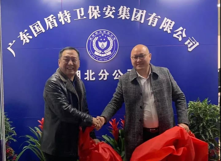 廣東國盾特衛保安集團有限公司董事長夏學樹和湖北分公司總經理詹金浪在有關領導的陪同下共同揭牌剪彩,湖北分公司的成立標志著國盾特衛保安集團布局全國又邁出了堅實的一步。