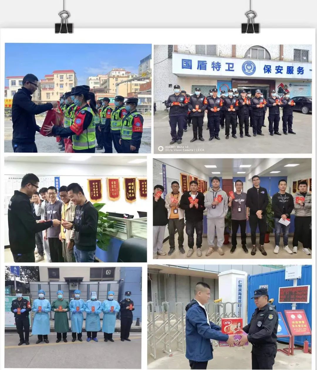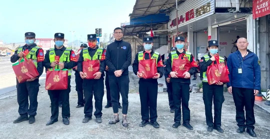 集團公司管理層奔赴各個區(qū)域分隊駐點,分批次深入基層向隊員派發(fā)暖心慰問品、防護品以及紅包,并叮囑基層人員做好客戶單位服務(wù)工作的同時不松懈落實個人防護措施,保證自己的安全與健康。希望他們要堅持模范表率,爭當在崗主力軍,始終堅持“顧全大局、愛崗敬業(yè)”的奉獻精神,對留崗保安員,傳達公司對他們春節(jié)期間堅守崗位、留佛過年的感謝和慰問。