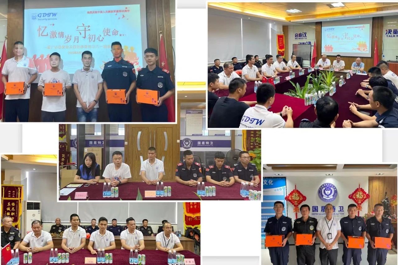 在中國人民解放軍建軍96周年到來之際,為貫徹習近平總書記關(guān)于退役軍人工作重要論述,落實黨中央、國務(wù)院有關(guān)決策部署的相關(guān)要求,大力弘揚軍愛民、民擁軍的光榮傳統(tǒng),凝聚軍民攜手奮進、攻堅克難的強大力量,更好地發(fā)揮退役軍人的工作積極性。8月1日下午,廣東國盾特衛(wèi)保安集團組織公司各部門的退役軍人代表開展以“憶激情歲月,守初心使命”的八一主題系列活動,動員和激勵公司退役軍人不忘初心、奮發(fā)有為,在新時代、新征程上聽黨話、跟黨走,為保安事業(yè)和集團發(fā)展作出積極貢獻。