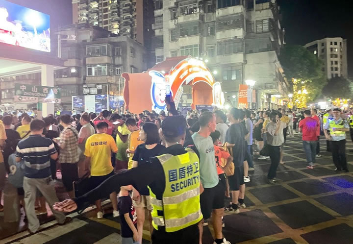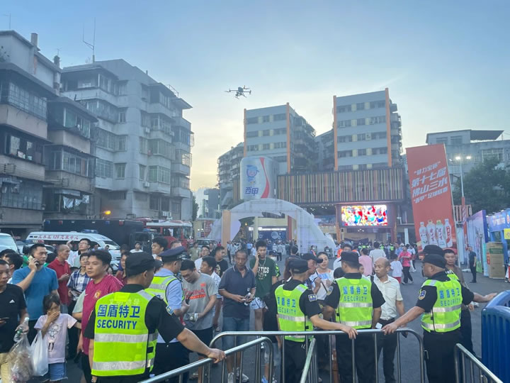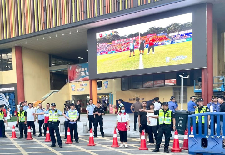 每晚開賽前,我司安保人員協助三水公安交警對活動現場周邊道路實施臨時交通管制,擺設交通管制牌、水馬和鐵馬,協助交警引導觀賽群眾到指定停車場停放車輛,確保賽事交通安全和群眾出行順暢。